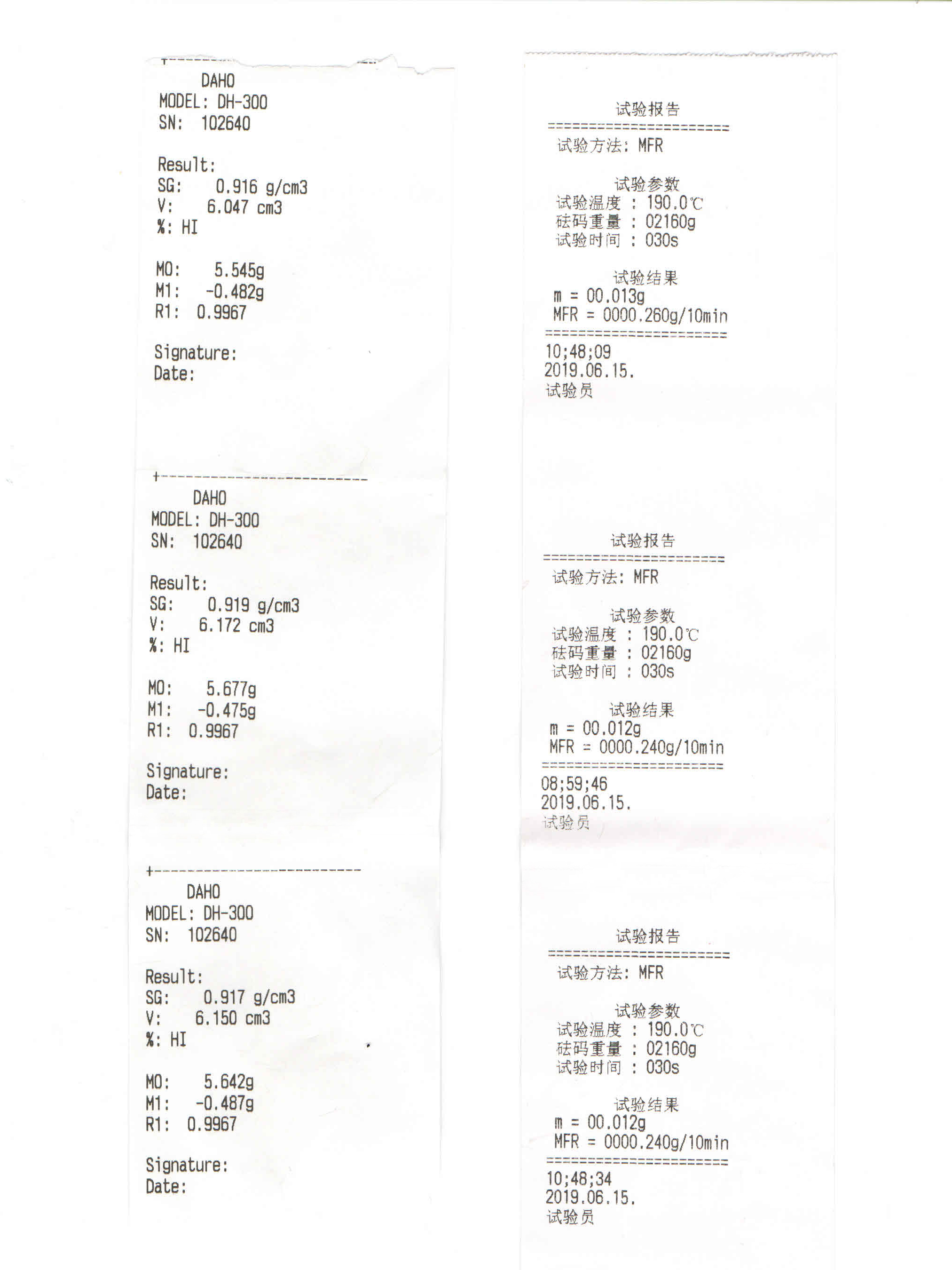 6月11日,海門普適的陳小姐聯(lián)系到我們,表明了公司的需求:測試PE塑料的熔體流動性與密度,精度沒有特別要求,經(jīng)濟實用就行。宏拓根據(jù)客戶需求推薦熔體流動速率儀HT-3682V-BA與密度計DH-300,發(fā)了一些相關(guān)資料參數(shù)后,客戶表示儀器功能與參數(shù)都沒問題,主要擔(dān)心測試不精準,經(jīng)過幾番溝通,最終決定先郵寄一些樣品過來測試,數(shù)據(jù)準確的話再考慮采購。幾天后,收到客戶寄來了一大包PE塑料樣品,當天并安排了測試,測試結(jié)果如下: